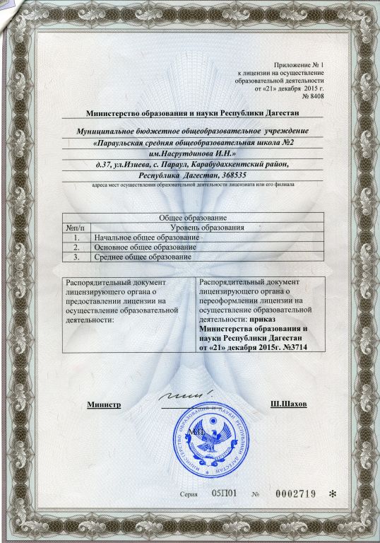 | Адрес местонахождения образовательной организации* | 368535 Республика Дагестан Карабудахкентский район с.Параул ул. Изиева 37 |